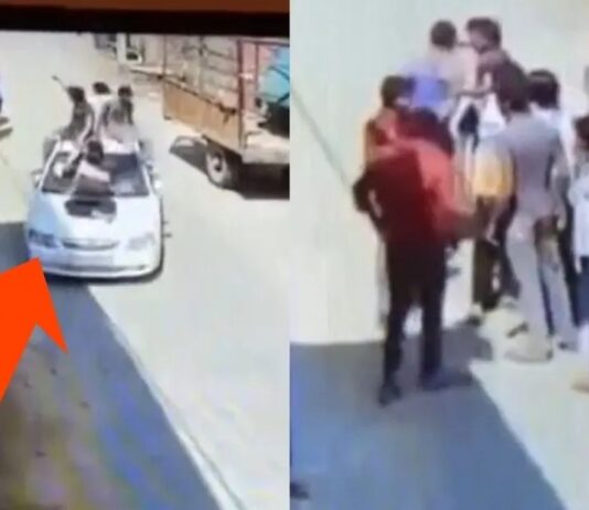 कार की छत पर बैठ फिल्मी स्टाइल में आए दबंग,