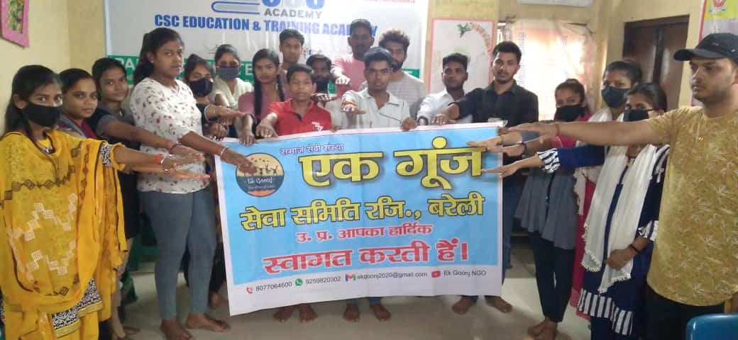 एक गूंज संस्था द्वारा कपड़ा वितरण अभियान मिशन के रूप में लगभग 3 वर्षों से चलाया जा रहा है संस्था ने मिशन 2 अभियान के अंतर्गत सैनिक कॉलोनी मैं पर्यावरण संरक्षण जल संरक्षण और स्वच्छता अभियान को लेकर कार्य प्रारंभ किया है संस्था के अध्यक्ष बंटी ठाकुर ने कहा संस्था द्वारा कपड़ा बैंक की स्थापना कर महानगर में विभिन्न स्थानों पर जाकर झुग्गी झोपड़ियों में निवास करने वाले जरूरतमंद लोगों को कपड़ा वितरण किया जा रहा है जो अभियान के रूप में कार्य किया और अब अभियान 2 के रूप में कार्य कर बच्चों को जागरुक करने का कार्य संस्था के सदस्य कर रहे हैं जिसके अंतर्गत पर्यावरण संरक्षण जल संरक्षण और स्वच्छता अभियान के अंतर्गत बच्चों को जागरूक करने का प्रयास किया जा रहा है जिससे अगर हमारे घरों के आसपास पर्यावरण अच्छा होगा स्वच्छ होगा और जल का संरक्षण होगा तभी हमारे आसपास अच्छा वातावरण रहे आलोक सिंह के नेतृत्व में बच्चों को शपथ दिलाई जिसमें उन्होंने वृक्ष लगाने और जल का प्रयोग सही से करने के बारे में चर्चा की पानी को बर्बाद ना करें ना ही करने दें और अधिक से अधिक पौधे लगाने के लिए लोगों को प्रेरित करें अपने-अपने घरों के आसपास पौधे लगाएं और अपनी छतों पर भी पक्षियों के लिए दाना पानी अवश्य रखें शपथ लेने वालों में प्रमुख रूप से प्रिया, संजना मिश्रा ,ज्योति , पायल वर्मा, प्रतिज्ञा शर्मा, बृजेश सिंह ,प्रशांत गुर्जर, शरद पाल ,परीक्षित राठौर, जयदेव, कृष्णा, सुरजीत, दिव्यांशी , कंचन, प्रीति, मोहित, शुभांशी गंगवार, अनुज पाल, हर प्रसाद यादव आदि छात्र छात्राएं मौजूद रहे