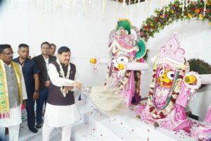 मुख्यमंत्री डॉ. यादव ने कहा कि आज पूरे विश्व में उडीसा में निकाली गई भगवान श्री जगन्नाथ की यात्रा का प्रसारण किया गया है। उज्जैन में भी काफी वर्षों से यह यात्रा निकाली जा रही है। यह हम सबके लिए अत्यंत सौभाग्य की बात है। उडीसा में स्थित भगवान जगन्नाथ जी का धाम चार धाम में से प्रमुख धाम है। उज्जैन के राजा इंद्रद्युम्न ने उडीसा में वर्तमान में स्थित मंदिर का निर्माण करवाया था।