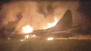 विमान हादसे के बाद उसका मलबा दूर तक जाकर गिरता है।