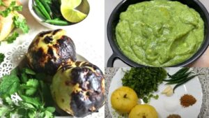 पहला स्टेप- अमरूद को भूनकर चटनी तैयार करनी है तो इसके लिए 1 या 2 अमरूद को गैस पर भून लें। बैंगन की तरह अमरूद को घुमाते हुए भूनना है। चटनी के हल्के कम पके अमरूद का इस्तेमाल करें। इसका स्वाद ज्यादा अच्छा आएगा। इसी के साथ 2 हरी मिर्च और 4 लहसुन की कली भी गैस पर या तवे पर भून लें।