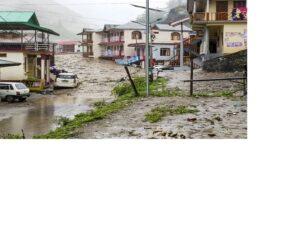 उत्तरकाशी के धराली में बादल फटने से आई बाढ़ में घर जलमग्न हो गए।