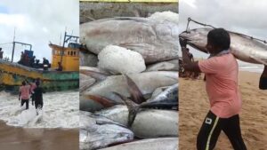 ।सामुद्रिक तूफान ‘मोंथा’ का असर तटीय इलाकों में भी सबसे ज्यादा दिखा। बुधवार को एक मछली पकड़ने वाली ट्रॉलर तेज लहरों की चपेट में आकर बालिहरचंडी समुद्र तट किनारे आ लगी। राहत की बात यह रही कि ट्रॉलर में मौजूद सभी 10 मछुआरे सुरक्षित बच गए हैं।यह ट्रॉलर विशाखापट्टनम की है और करीब 10 दिन पहले समुद्र में मछली पकड़ने के लिए निकली थी। 25 तारीख को जब तूफान की चेतावनी मिली, तो मछुआरों ने बीच समंदर में एंकर डालकर समुद्र शांत होने का इंतज़ार करने का फैसला किया था। लेकिन मंगलवार रात अचानक ट्रॉलर में तकनीकी खराबी आ गई। उसी दौरान समुद्र में तेज लहरें और ज्वार बढ़ गया, जिससे एंकर की रस्सी टूट गई। समुद्र में अटके नाव को चक्रवात ‘मोंथा’ ने पहुंचाया तट पर, कई टन मछली के साथ 10 मछुआरे सुरक्षित हुए लैंड