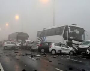 कोहरे के कारण कई गाड़ियां आपस में टकरा गई ,24 लोगों की मौत हो गई