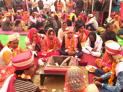 मुरादाबाद। प्यार के मौसम के बीच वैलेंटाइन वीक में 183 जोड़े मुख्यमंत्री सामूहिक विवाह योजना के तहत दाम्पत्य सूत्र में बंधे। मुख्यमंत्री सामूहिक विवाह योजना के अन्र्तगत शनिवार को हिन्दु-मुस्लिम एवं अन्य को मिलाकर कुल 183 जोड़ों का सामूहिक विवाह सम्पन्न कराया गया यह कार्यक्रम नगर निगम मुरादाबाद में सम्पन्न हुआ जिसमें लाभार्थियों को 35 हजार रू0 का चैक एवं 10 हजार रू0 का घरेलू सामान व 6 हजार रू0 से भोजन आदि की व्यवस्था कुल मिलाकर 51 हजार रू0 का वितरण किया गया। कार्यक्रम में सांसद कुंवर सर्वेष कुमार, जिलाधिकारी राकेश कुमार सिंह, मेयर विनोद अग्रवाल, नगर विधायक रितेश गुप्ता द्वारा वैवाहिक जोड़ों को आर्षीवाद दिया गया। इस अवसर पर मुख्य रूप से जिला समाज कल्याण अधिकारी सुनील कुमार, कार्यक्रम अधिकारी अनुपमा शाडेल्य, महापौर विनोद अग्रवाल सहायक आयुक्त गंभीर सिंह, अपर नगर आयुक्त अब्दुल बासित, प्रिया अग्रवाल, समीउल्ला खान एवं राजपाल सहित समाज कल्याण विभाग के अन्य पदाधिकारी मौजूद रहे।