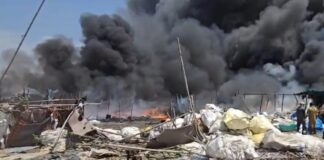उत्तर प्रदेश के गाजियाबाद में गुरुवार दोपहर पन्नी के गोदाम में...
