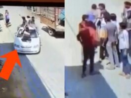 कार की छत पर बैठ फिल्मी स्टाइल में आए दबंग,